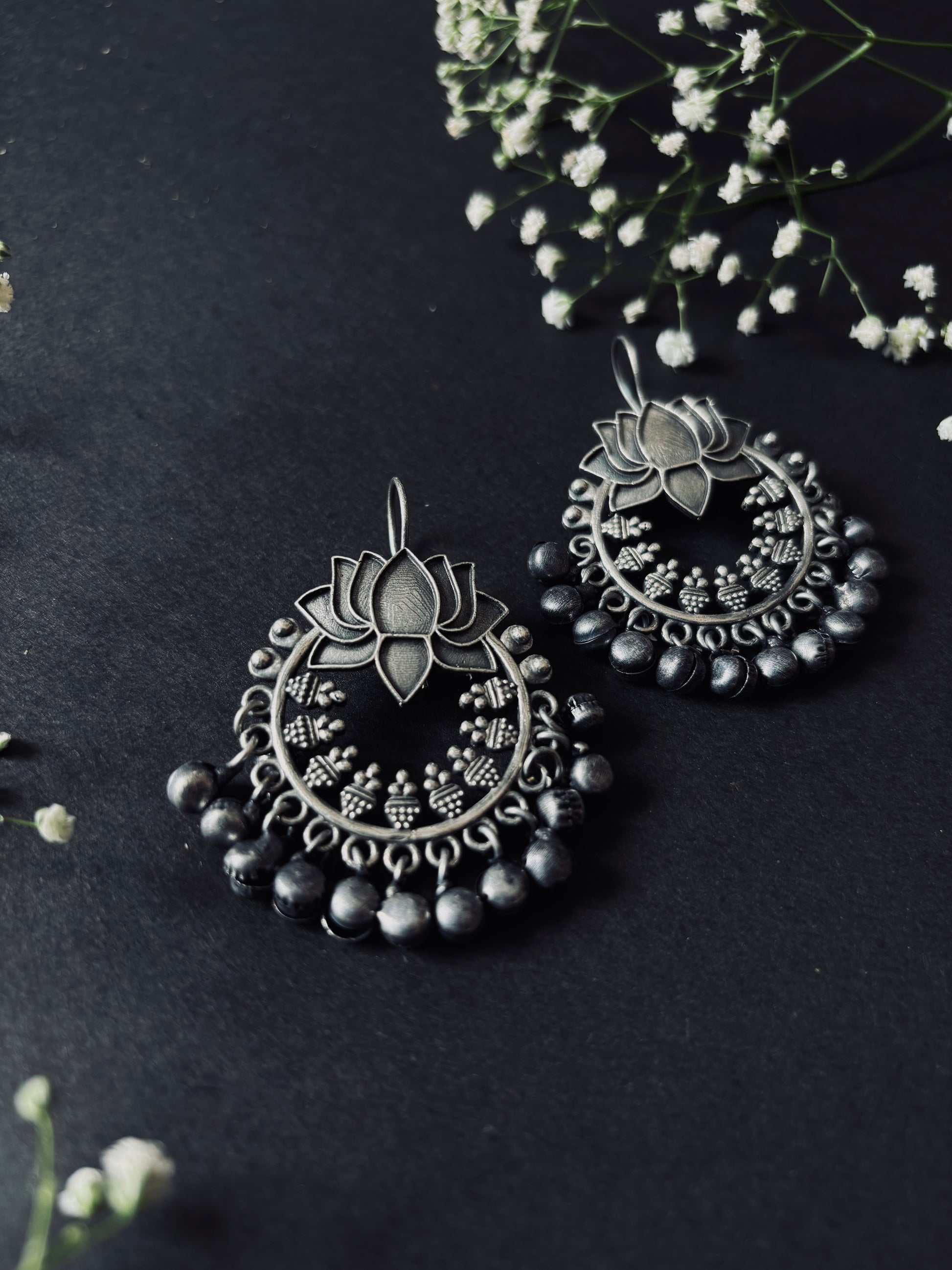 Padma Oxidized Silver look alike Chand Bali Earrings